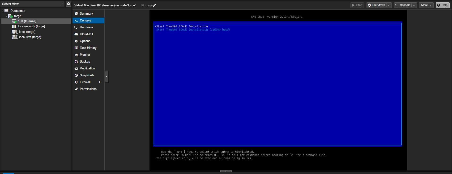 Now that we have Proxmox installed and configured properly, we can create a VM and install TrueNAS on it.