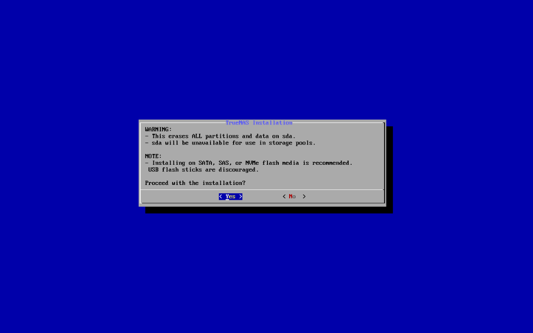 You will next see a confirmation page asking if you want to proceed. Ensure Yes is highlighted and then press the Enter key.