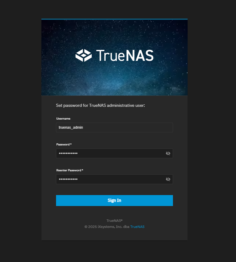 Now that TrueNAS is installed and configured, you can proceed to the next step in the blueprint: Setting up another VM for Installing Home Assistant OS.