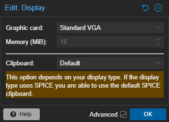 With the VM now shut down, open the VM’s “Hardware” menu, select the “Display” line and click the “Edit” button.